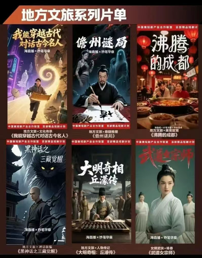 地方文旅融合系列聚焦文化传承与地域特色,《我能穿越古代对话古今名人》打通古今对话场景,《儋州谜局》融入海南地域悬疑元素,《沸腾的成都》以美食甜宠展现城市魅力,更有《琼海遗珠》《织海谣》等非遗题材作品,推动地方文旅与影视内容深度绑定。