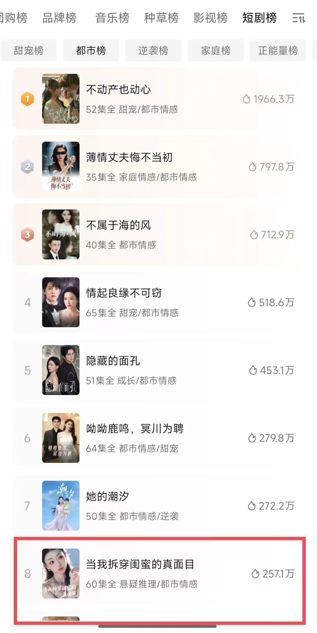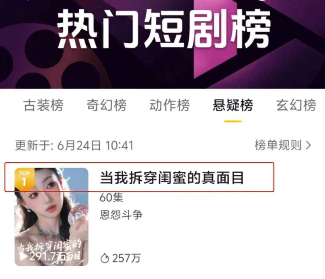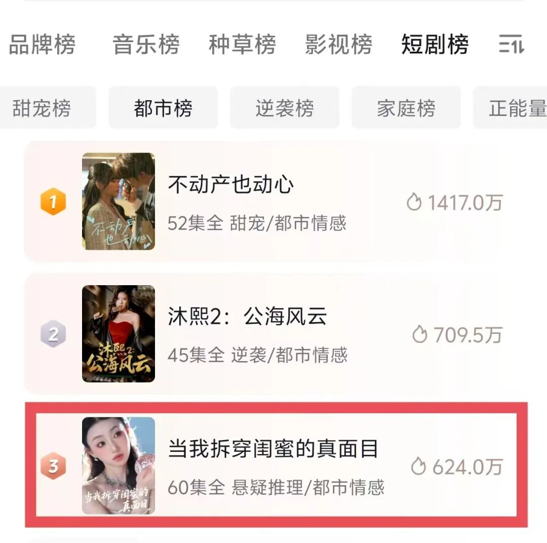 6 月 23 日,由海直播、妙笔华章出品,八爪互娱、圣昱科技、东坡老家联合出品的都市情感短剧《当我拆穿闺蜜的真面目》正式热播。该剧是中国微短剧产业合作联盟 “百部精品短剧计划” 最新力作,通过集结行业精锐匠心打造,展现出海直播深耕微短剧领域、引领精品内容创作的坚定步伐。