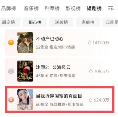 6 月 23 日,由海直播、妙笔华章出品,八爪互娱、圣昱科技、东坡老家联合出品的都市情感短剧《当我拆穿闺蜜的真面目》正式热播。该剧是中国微短剧产业合作联盟 “百部精品短剧计划” 最新力作,通过集结行业精锐匠心打造,展现出海直播深耕微短剧领域、引领精品内容创作的坚定步伐。 该剧由丁黎平、柳昭君、申玉红、孟钰辰担任总出品人;张靖、钱勇、韩雪飞、崔聪任出品人;成洪荣任总监制;艾然任总编;许颢担纲导演。 上线首日跻身都市榜top8,48小时内跃升至都市榜top3。